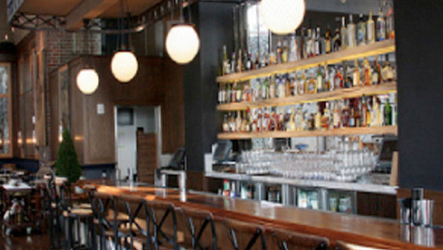 A happy hour from 3pm to 7pm, of well spirits, wine, and draft beers, complements Artisan House’s bar of mixology concoctions. Schwarz tells me their selections of cocktails ($10 – $14) were each designed exclusively for the restaurant – samples include The Cali (vodka, St. Germain liqueur, muddled cucumber and mint with a dash of pepper) and The Caufield (Ford’s Gin, lavender syrup, lime, grapefruit, all served up). And in keeping with the green-minded template for the restaurant, the bar top originally served as the building’s wooden doors.